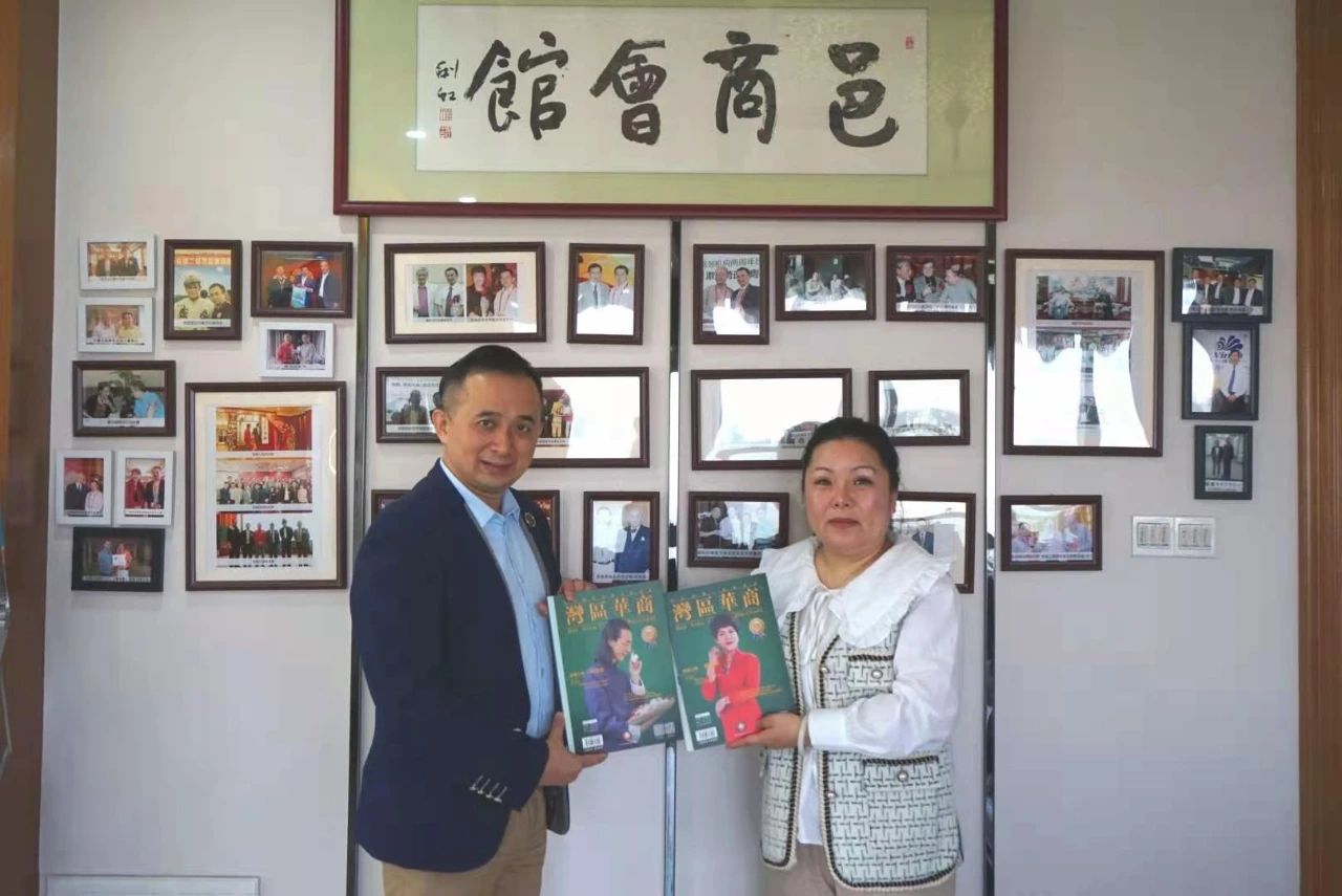 江门市湖南商会执行会长袁冶(右)与保险女王一见投缘